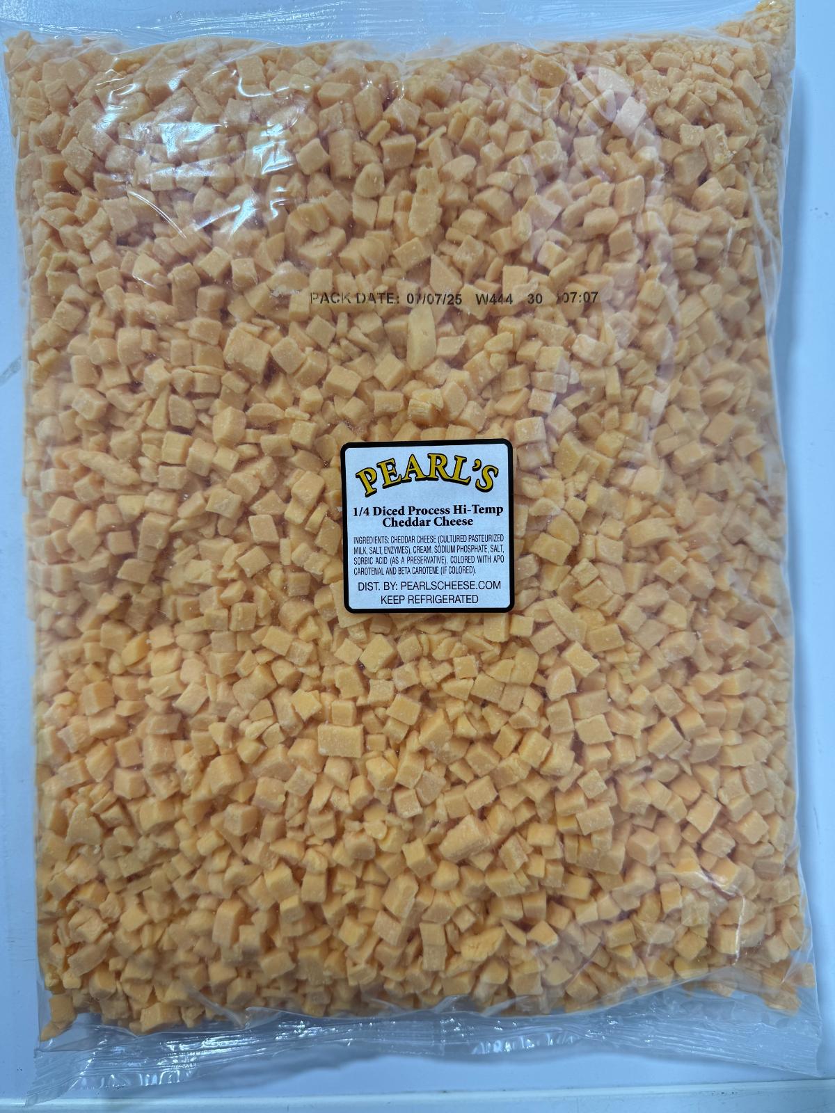 High-temp, diced cheddar cheese adds a sharp, savory flavor that complements sausage and other meats.